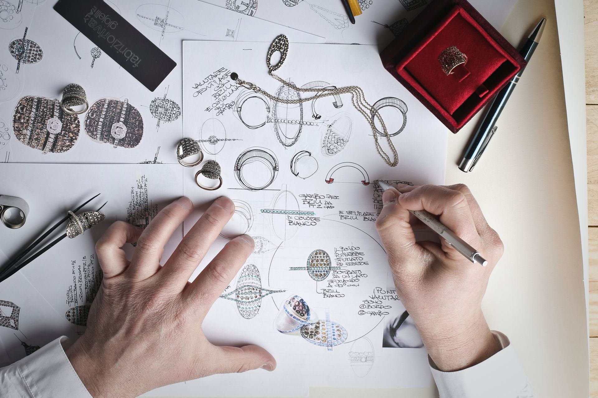 Schmuck, der mit Diamanten oder Farbsteinen besetzt ist, wird im hauseigenen Diamant- und ...